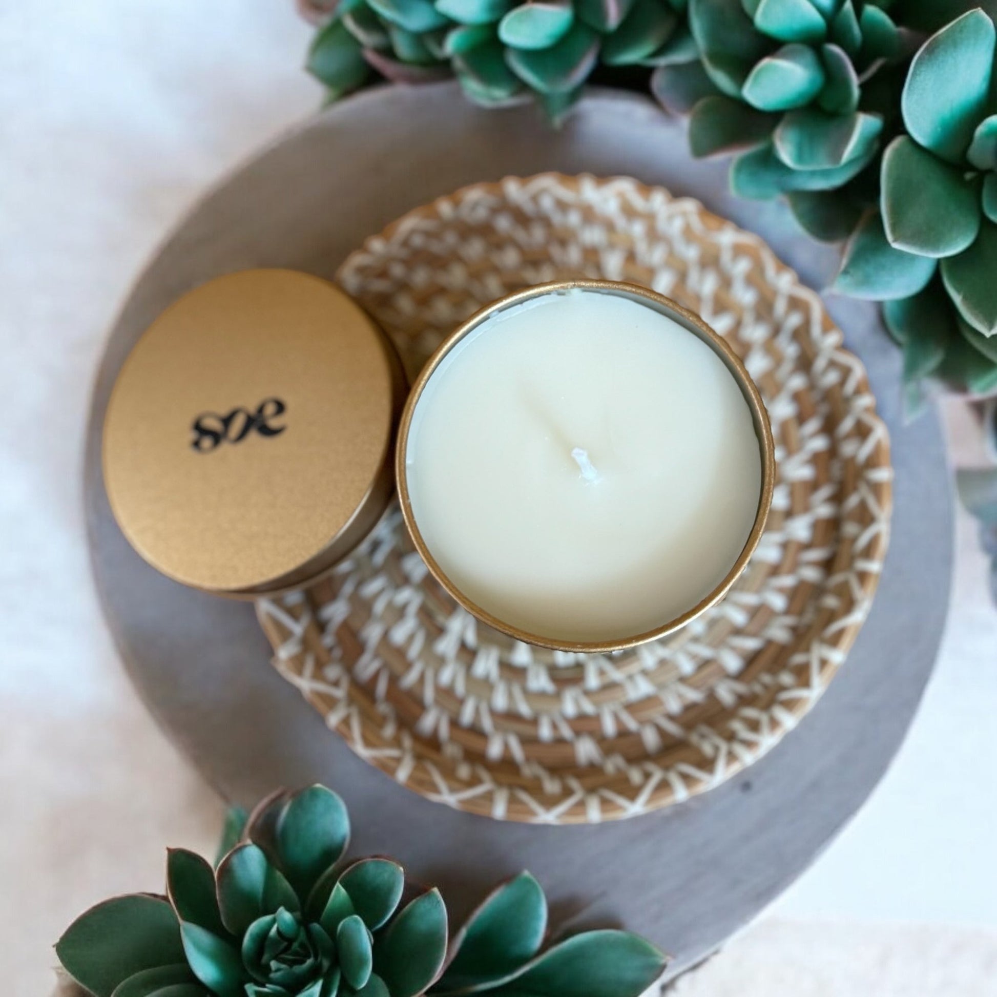SOE Tindle Tin Soy Wax Candle (Fragrance: COCONUT VANILLA )